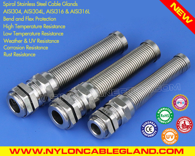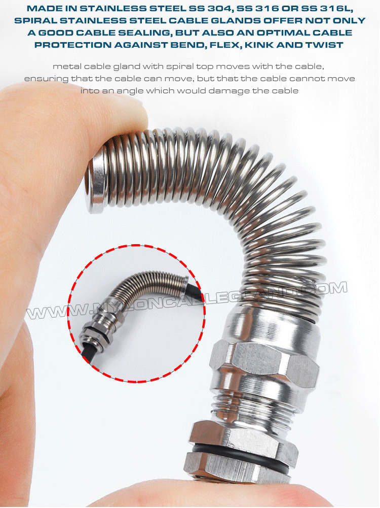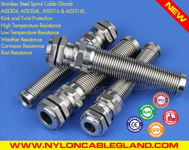 كابل جلاند كابل الغدة (موصل غدة كيبل)المترية IP68 المقاومة للماء M12~M50 من الفولاذ المقاوم للصدأ من النوع 304/316/316L مع حماية ضد الالتواء والانحناء ولها القدرة على المقاومة الكيميائية، ومقاومة التآكل والمقاومة للحرارة، كما أن لديها القدرة على قوة الشد العالية، والمثابرة العالية، ومقاومة الماء الجيدة، وحماية الانحناء الممتازة ووقت الخدمة الطويل.
