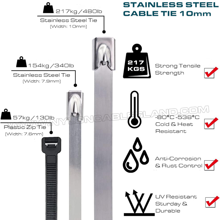 أربطة الكابلات المصنوعة من الفولاذ المقاوم للصدأ هي منتجات من الفولاذ المقاوم للصدأ تُستخدم لربط الأشياء وتثبيتها. ولأنها مصنوعة من مادة الفولاذ المقاوم للصدأ، فهي مقاومة للتآكل الكيميائي (الأحماض والقلويات والأملاح، إلخ). علاوة على ذلك، لا تقتصر أربطة الكابلات المصنوعة من الفولاذ المقاوم للصدأ على شكل أو حجم الشيء المراد ربطه. فتركيبها البسيط يُبسط تعقيد المشابك التقليدية، كما يضمن أداؤها الممتاز في التثبيت سلامة الأشياء المربوطة. كما تضمن مادة الفولاذ المقاوم للصدأ المقاومة للتآكل ودرجات الحرارة العالية مظهرًا جماليًا وتلبي متطلبات السلامة من الحرائق.