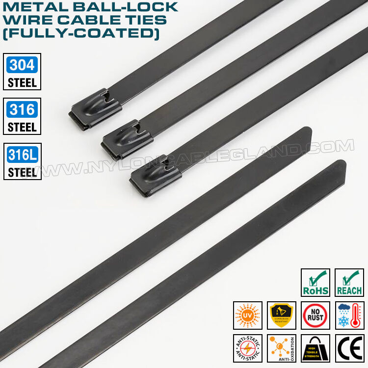 الروابط الكابلات الفولاذ المقاوم للصدأ مغلفة بالكامل الروابط المعدنية السحب هي نوع من العناصر اللاصقة مع قفل الكرة وتغطية البولكسية الكاملة (البوليستر أو النايلون 11).الخيوط المعدنية والحزام مصنوعة من الفولاذ المقاوم للصدأ 304، 316 أو 316L ويتم تغطية السطح بأكمله بطبقة من المواد الايبوكسي (بوليستر أو نايلون 11).يمكن أن يوفر الطلاء حماية إضافية لربطات الكابلات ويجعلها أكثر مقاومة للتآكل، أكثر مقاومة للاستعمال وأكثر جمالاً. وهي تستخدم على نطاق واسع للتثبيت والربط في مجالات أنظمة الطاقة والصناعة الكيميائية والبحرية والنفط والآلات والأنابيب والأنابيب والحدائق والمزارع ،الخ.
